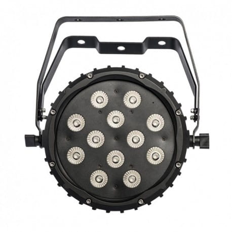 HALFPAR12 jest częścią innowacyjnej linii projektorów LED dużej mocy, które integrują zarządzanie kolorami w trybie pokazu z możliwością zarządzania standardowym miksem kolorów RGB z korektą temperatury barw dzięki zastosowaniu specjalnie zaprojektowanego źródła LED (z uwzględnieniem barw zimnej bieli i ciepłobursztynowej), gwarantując doskonały blask kolorów. Duże frontalne soczewki pozwalają doskonale mieszać barwy bez efektu aberracji chromatycznej. Aluminiowa obudowa została zaprojektowana tak, aby zapewnić maksymalne rozpraszanie ciepła bez użycia hałaśliwych wentylatorów chłodzących. Te cechy sprawiają, że cała seria sprawdzi się w każdym rodzaju show i różnych środowiskach, takich jak teatry czy kluby. Źródło światła HALFPAR12 to 12 x 10 W 5 w 1 RGBWA/FC LED.